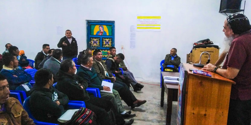 Depués de la formación impartida por el arzobispo, se entabló diálogo entre los participantes en el decanato del norte de Huehuetenango, en San Mateo Ixtatán.