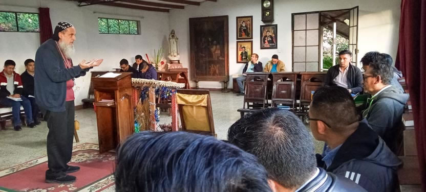 Hacia el caer del día, los padres Henry y Luís, miembros del equipo de formación del seminario, participaron dirigiendo una serie de reflexiones tendientes a ayudar a la organización práctica del seminario.