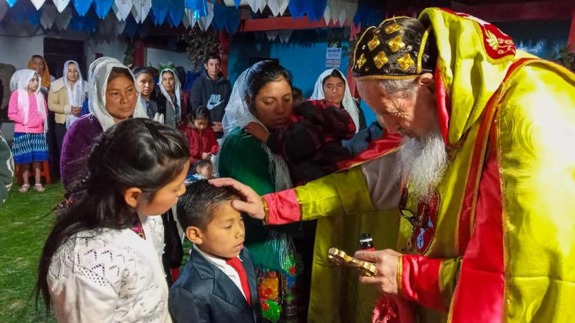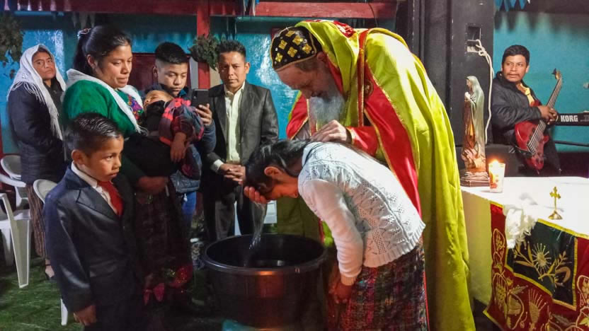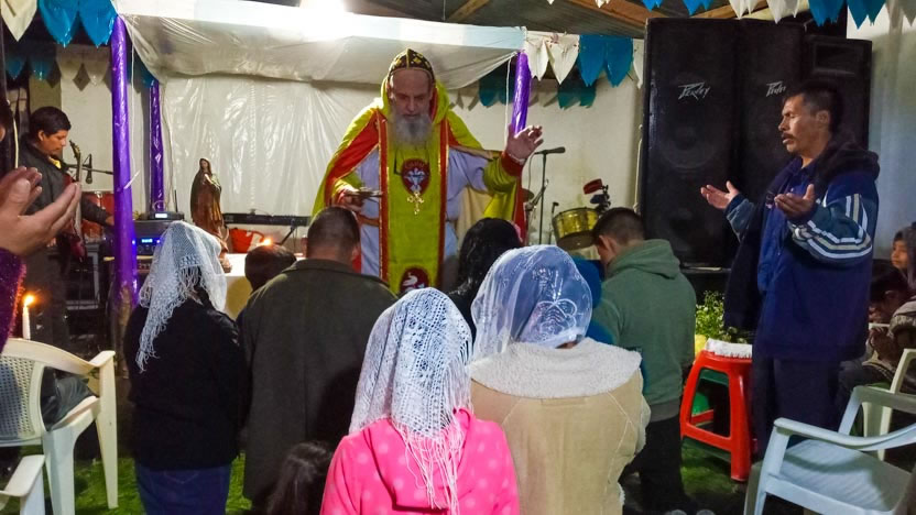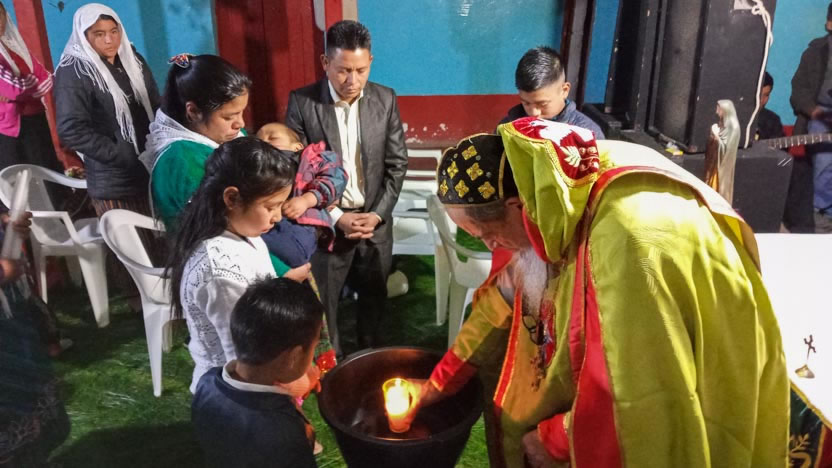 El sábado 5 de febrero, por la noche, al finalizar la celebración de la divina liturgia, el arzobispo invitó a los hijos y nietos de los hermanos Juan Juventino Reyes y Andrea Sontay, fundadores de la comunidad de El Rodeo, para orar por ellos.