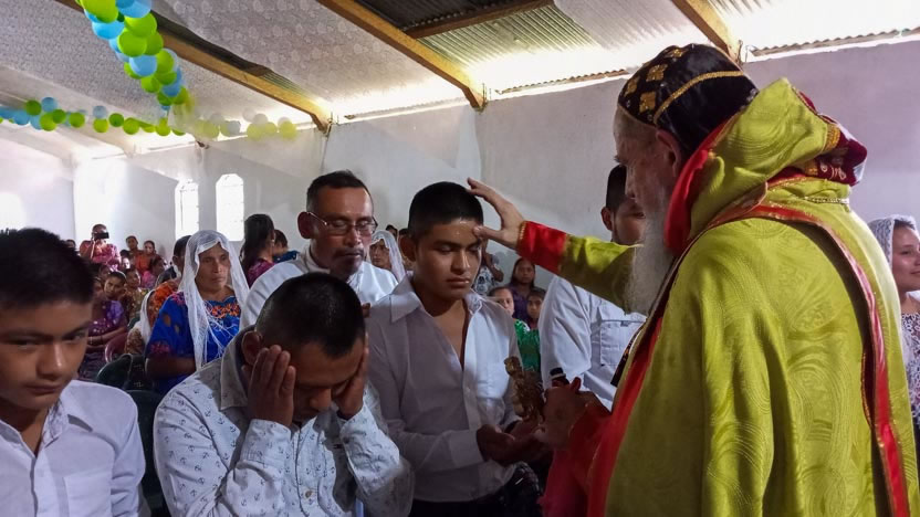 La visita a la comunidad de Tzalamilá, concluyó con la celebración de la divina liturgia. Concelebraron los padres Alexander y Gustavo y participaron los diáconos Sergio y Lorenzo.
