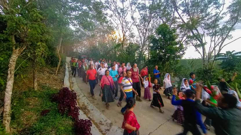 Los hermanos salieron a dar la bienvenida al arzobispo a un lugar ubicado a cierta distancia del templo de la comunidad, para emprender una caminata de bienvenida con el arzobispo. |