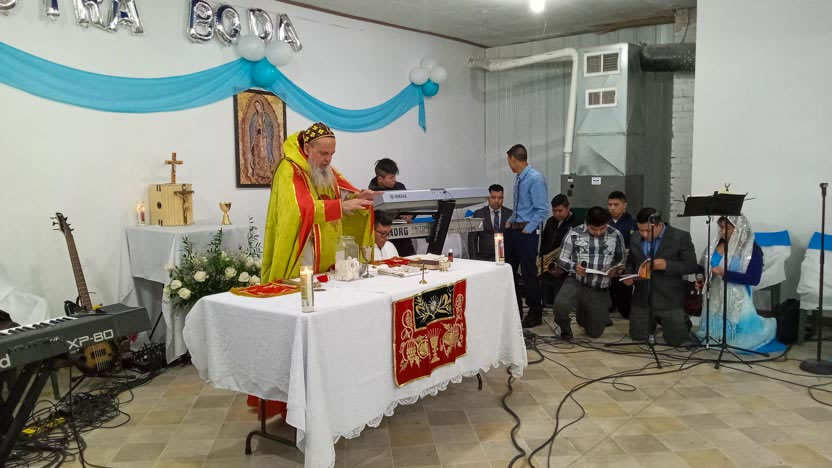 El jueves 24, en el marco de una visita muy breve que hizo el arzobispo a Los Angeles, California, visitó la comunidad de El Pescador, para celebrar los divinos misterios.