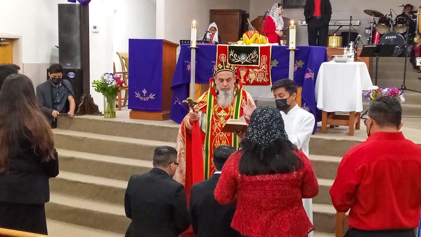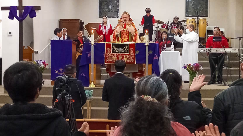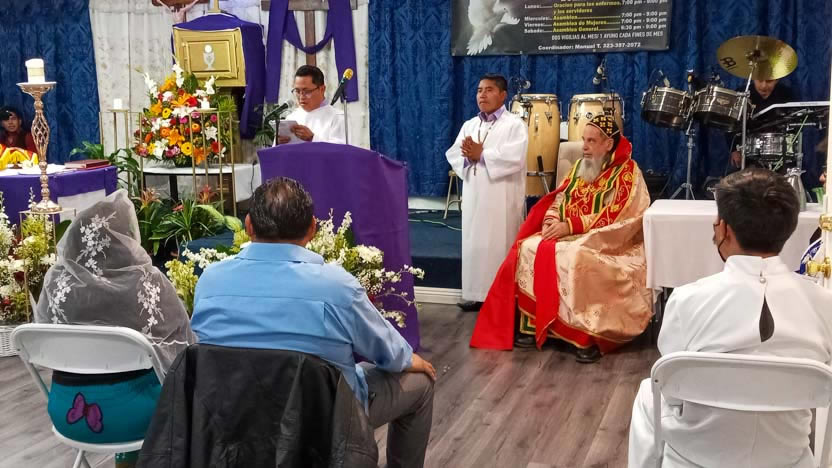 Seguidamente, el arzobispo presidió la celebración de la divina liturgia, para los hermanos presentes, de la comunidad Santa María de Guadalupe de Riverside.