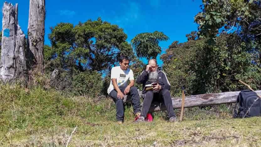 Después de una larga caminata en medio de la naturaleza y de la sequía característica de la época, se llegó a la cima. Poco después de llegar, se emprendió un tiempo de oración y, después de unos momentos de descanso, se emprendió el descenso y el retorno al seminario. |