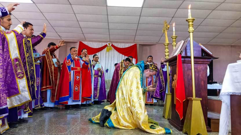 A continuación, el arzobispo presidió la celebración de la divina liturgia, la cual fue concelebrada por los diez y nueve presbíteros que ejercen el ministerio presbiteral en esta zona.