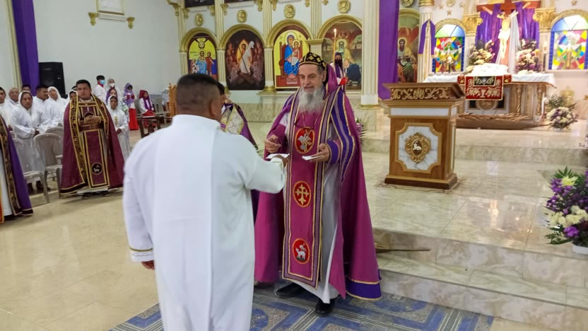 Seguidamente, el arzobispo presidió la celebración de la divina liturgia, la cual fue concelebrada por el Padre Santos Acosta, párroco local.