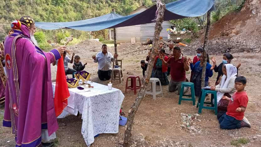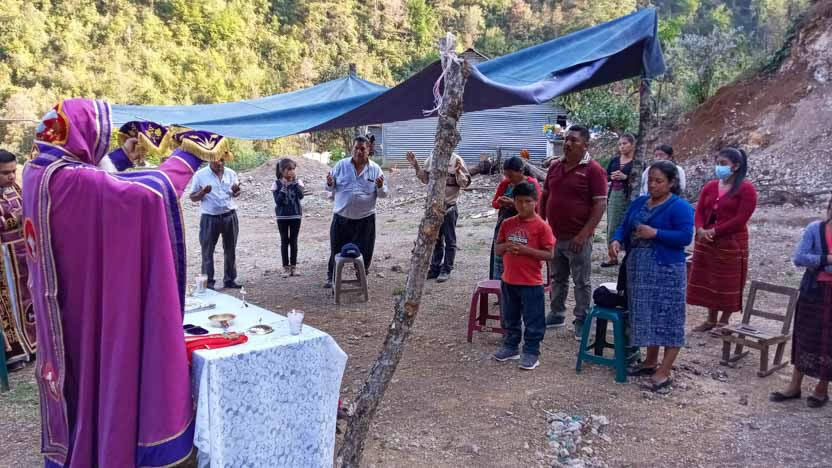 | 13: DIVINA LITURGIA EN EL ÁREA DE CONSTRUCCIÓN DEL NUEVO TEMPLO DE LA COMUNIDAD DE IXTIAPOC, SOLOMA. |