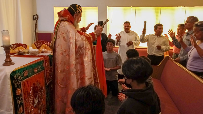 | 01: DIVINA LITURGIA CON HERMANOS DE LA COMUNIDAD SANTA MARÍA DE GUADALUPE, RIVERSIDE, CALIFORNIA. |