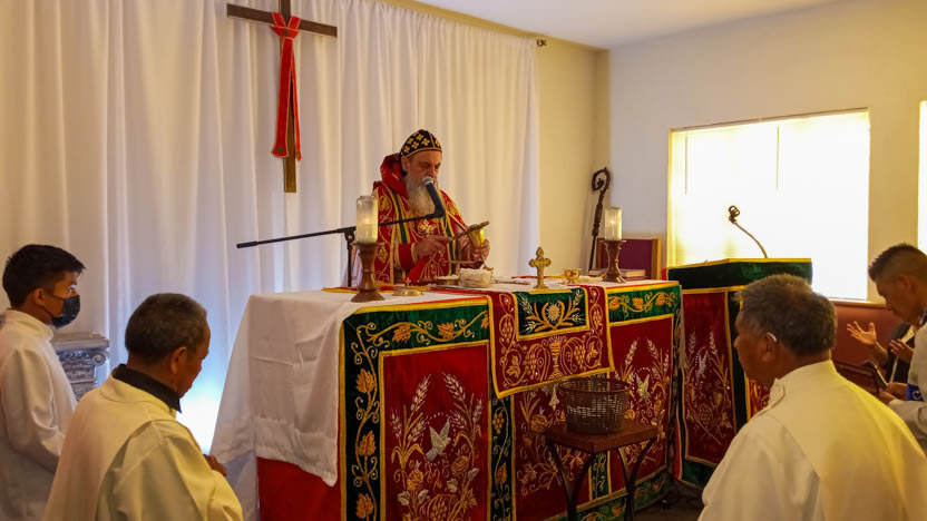 Finalmente, el arzobispo presidió la cebración de la divina liturgia, en la cual participaron todos los hermanos presentes con una actitud de sincera devoción.