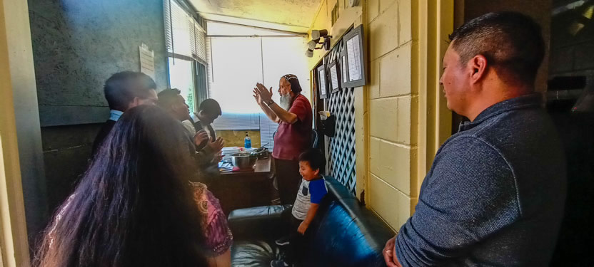 El lunes 6, por la mañana, llegó hasta la sede de la comunidad San Pedro, en donde se le dio la bienvenida. La comunidad estaba celebrando su quinto aniversario. |