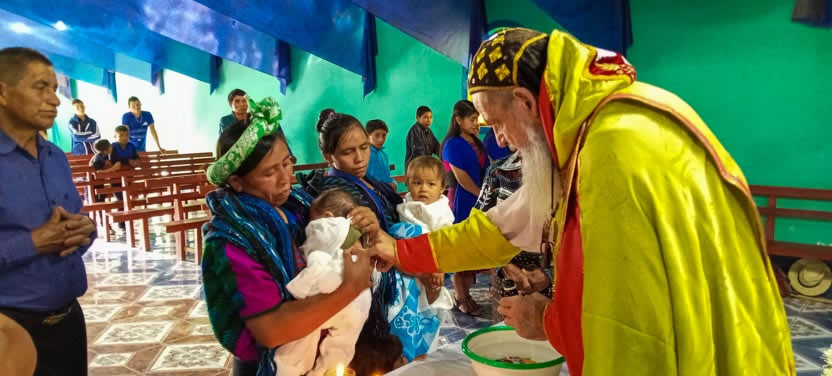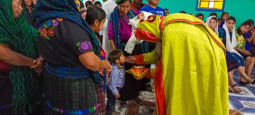 Dentro del marco de la visita a la comunidad de Tzununá, se administraron los sacramentos de la iniciación cristiana al niño Mynor, nieto del líder de la counidad, hermano Miguel.