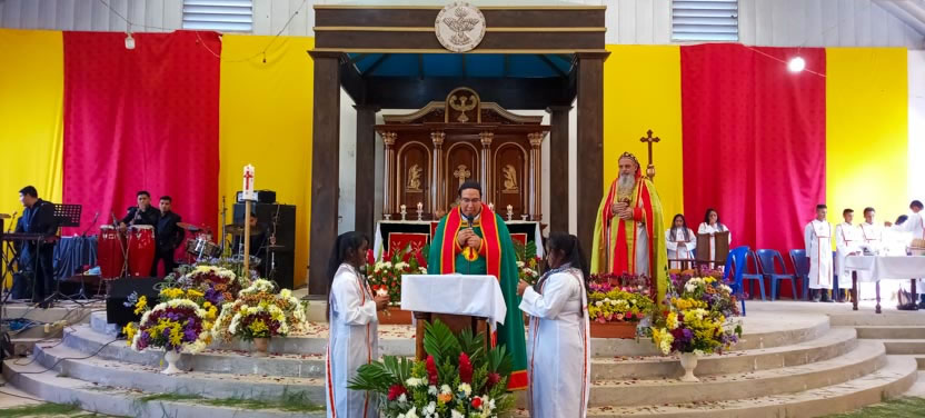 Para concluir la visita a la comunidad de Pajomel, el arzobispo residió la celebración de la divina liturgia, ofrecida especialmente, para implorar el perdón de los pecados y la efusión del Espíritu Santo.