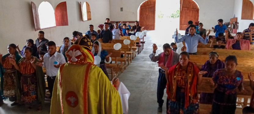 El domingo 12 de junio, por la tarde, el arzobispo llegó hasta la sede de la parroquia del Espíritu Santo, de Los Guantes, San Juan Sacatepéquez, Guatemala.