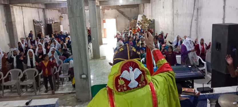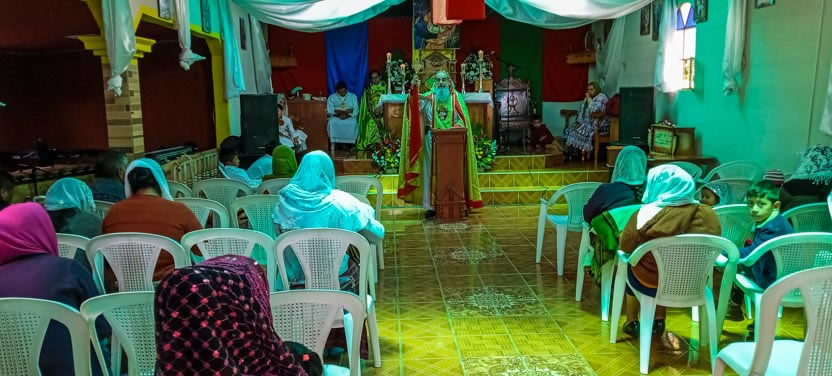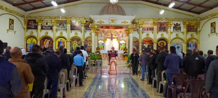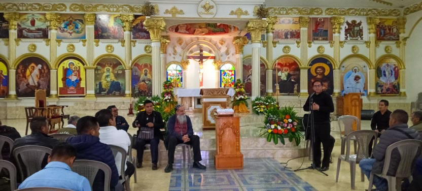 La visita a la comunidad Pacto Divino concluyó con la celebración de la divina liturgia para los miembros de la comunidad, que estaban participando con devoción.