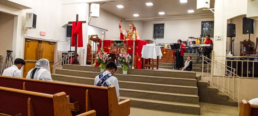 Finalmente, el arzobispo presidió la celebración de la divina liturgia, para los catequistas y otros fieles que estaban participando en la celebración parroquial.