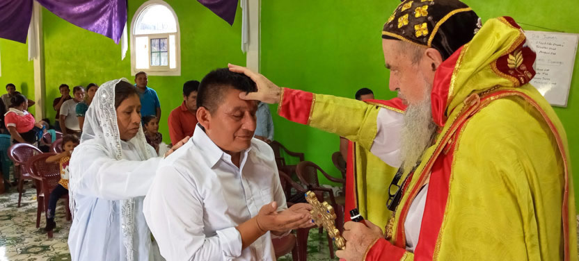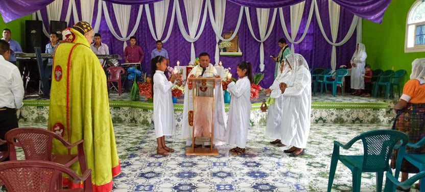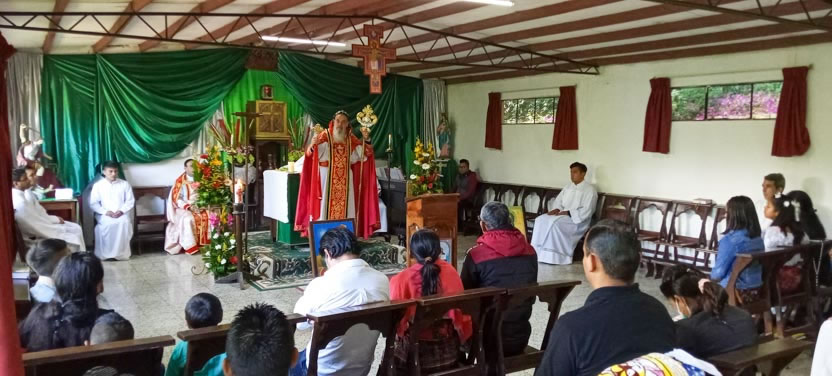 Finalmente, el arzobispo presidió la celebración de la divina liturgia con los hermanos de la sede parroquial de Yalicoc, Raxruhá. Concelebró el padre Juan Sebastián, párroco local.