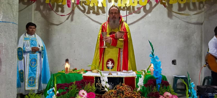 Finalmente, el arzobispo presidió la celebración de la divina liturgia, para los hermanos de la comunidad de El Socorro. Chicacao. El Padre Tomás Canay, concelebró la liturgia.