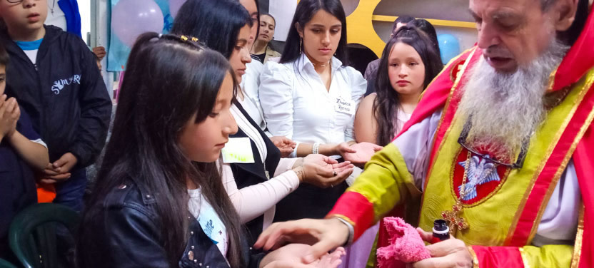 El mismo día 22, a mitad de la mañana, después de una caminata, pues ese día estaba prohibida la circulación de vehículos en Bogotá, se llegó hasta el lugar en el que el Padre Michael se reúne para celebrar la divina liturgia con los hermanos del Barrio María Cristina.