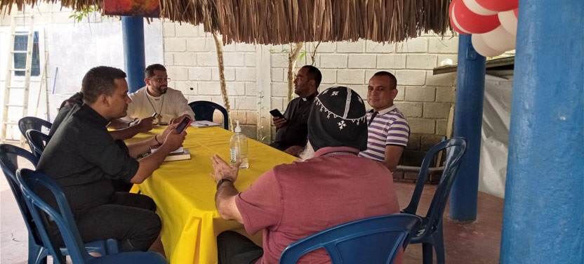 Después de la reunión con el pueblo de Dios, se tuvo una breve reunión con los padres Michael y Jesid, así como con el diácono Andrés Herrera, quienes ejercen pastoralmente en el área.