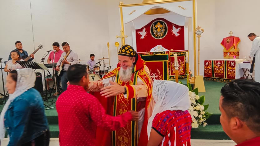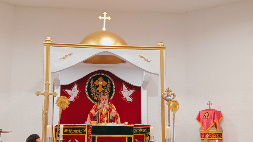 Antes de comenzar con la celebración de la divina liturgia, el arzobispo exhortó a los hermanos a intercambiarse el saludo de paz, como señal de la comunión que se vive.