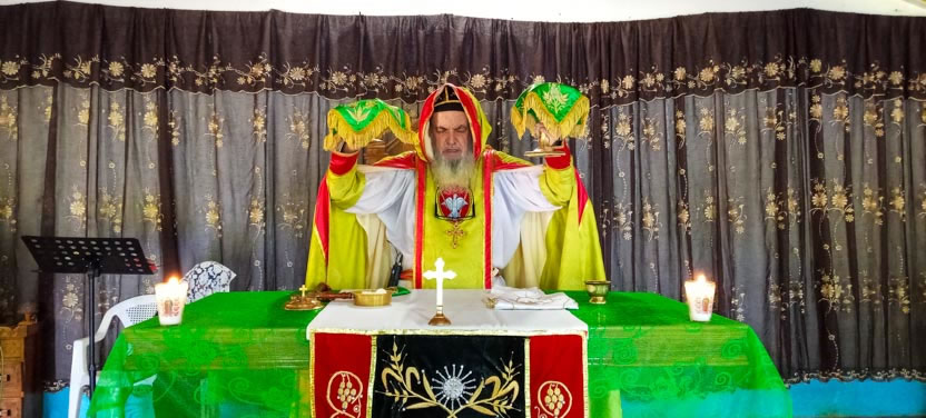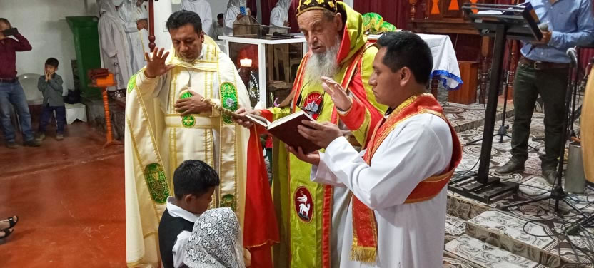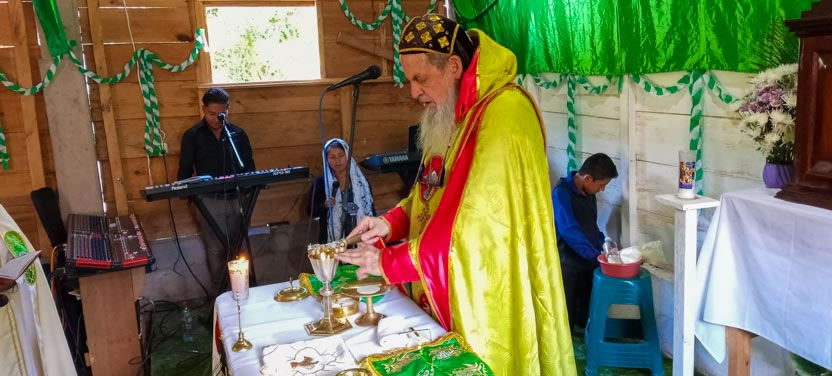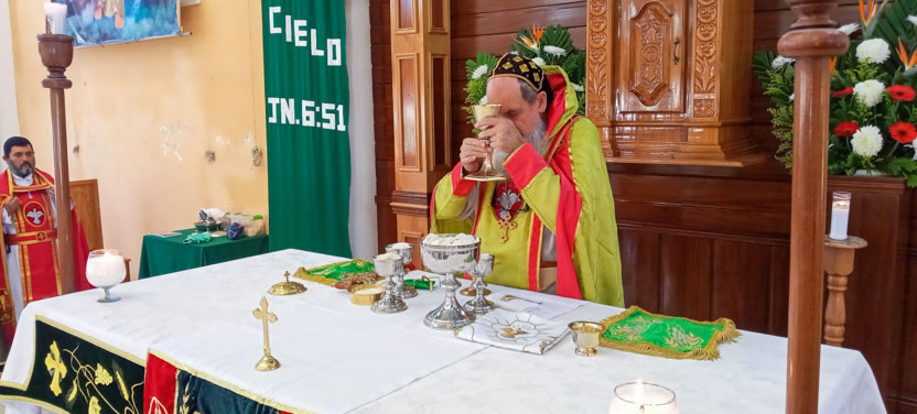 Poco después del medio día, el arzobispo concluyó la visita a la comunidad de Nueva América, con la celebración de la divina liturgia, concelebrada por el Padre Huego.