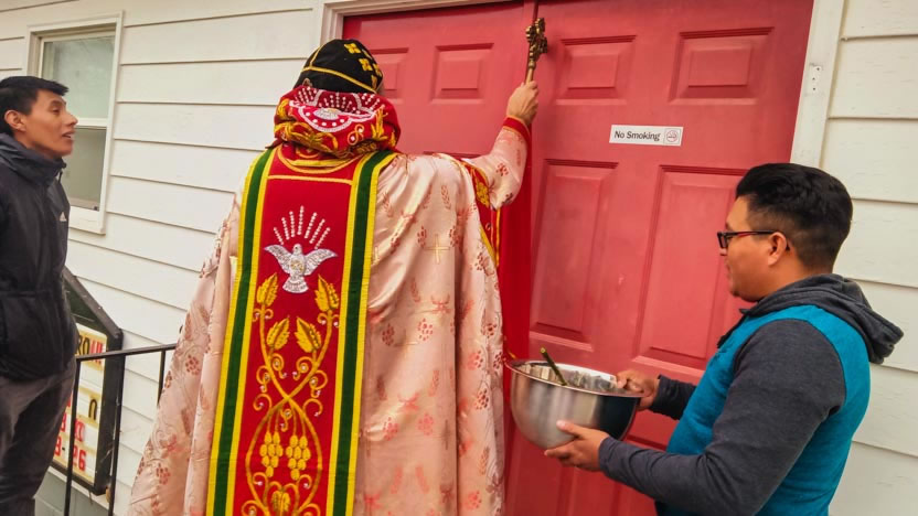 El sábado 12 de noviembre, los hermanos llevaron al arzobispo hasta el nuevo templo recién adquirido, para comenzar la visita pastoral de la comunidad.