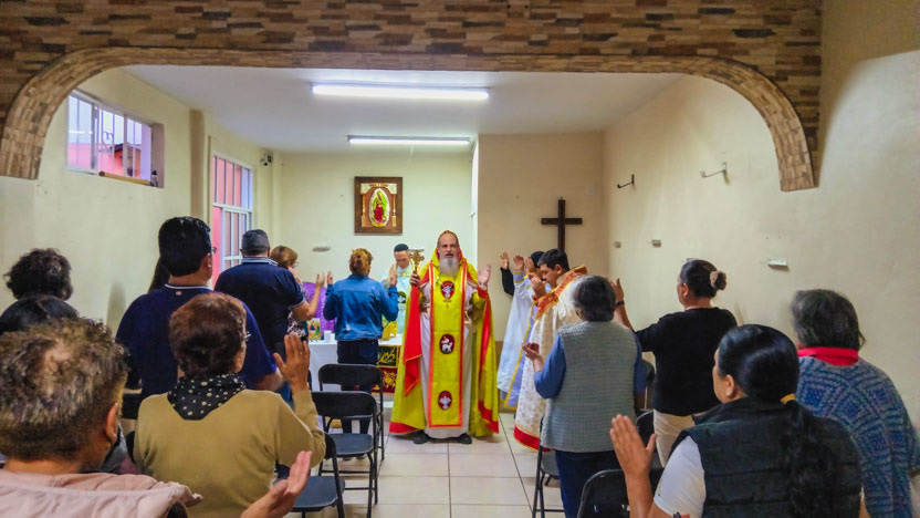 La actividad en la comunidad de Zumpango culminó con la celebración de la divina liturgia. La misma fue presidida por el arzobispo y concelebrada por los seis presbíteros presentes.