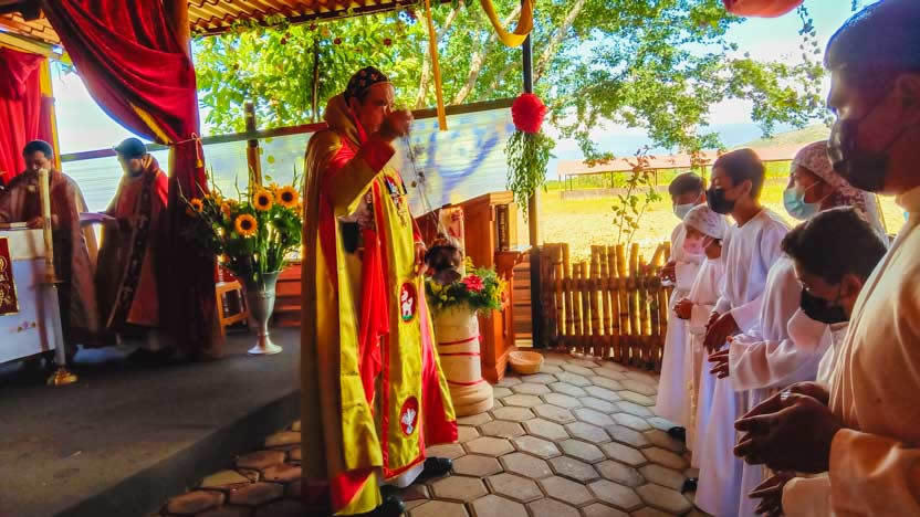 Antes de entrar en la celebración de la divina liturgia, el arzobispo invitó a los hermanos a intercambiar el saludo de la paz, de acuerdo a la tradición cultural local.