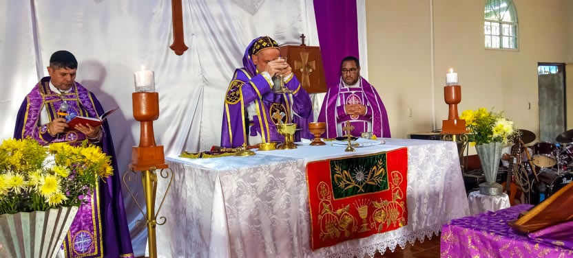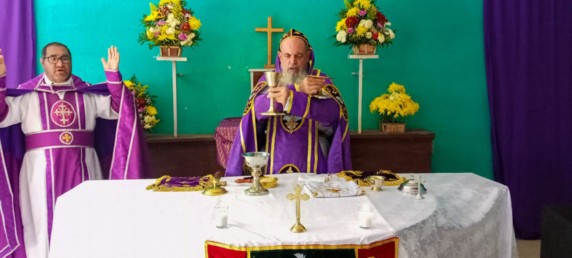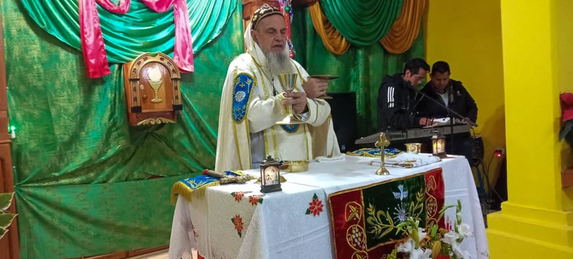 La visita a Guaymando concluyó con la celebración de la divina liturgia, presidida por el arzobispo y concelebrada por los padres Edwin, párroco local y Ángel Cáseres, quien acompañaba al arzobispo.