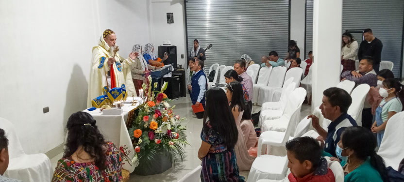 Finalmente, el arzobispo presidió la celebración de la divina liturgia, en la comunidad de Concepción Huista, Huehuetenango, en la cual concelebró el padre Santos Acosta, párroco local.