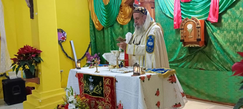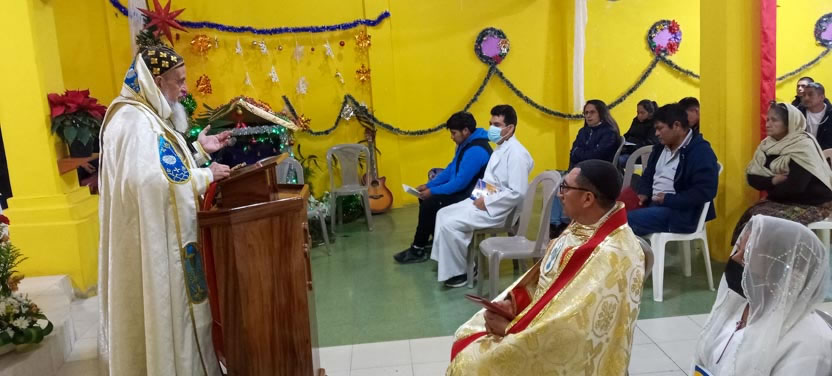 Las actividades del arzobispo en Comalapa, culminaron con la celebración de la divina liturgia de la Natividad del Señor. Concelebraron con el arzobispo los padres Francisco y Eliseo.
