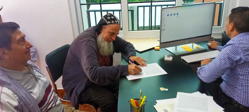 Sin embargo, la primera actividad que se realizó, fue la firma de documentos, por los cuales, el hermano Manuel, dona una parte y vende otra, para contruir el Centro Parroquial, en la Aldea Tzisbaj.