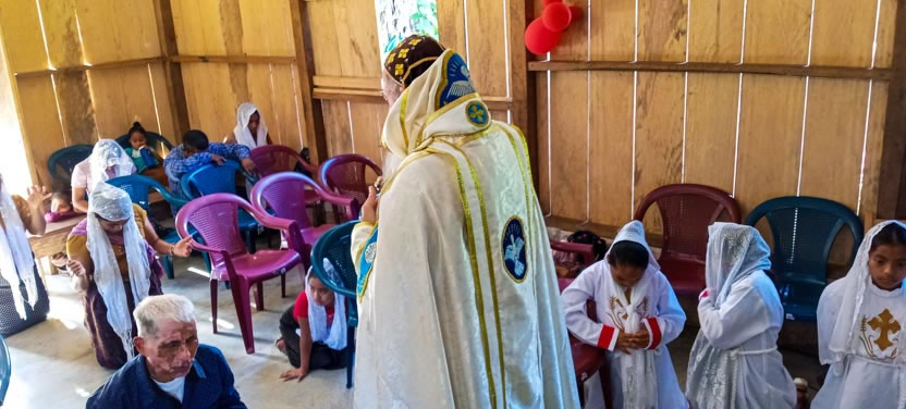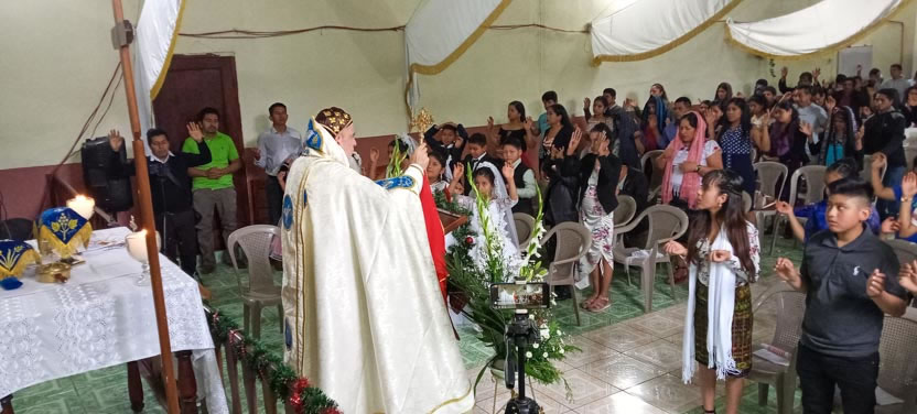 El martes 27 de diciembre, el arzobispo llegó hasta la aldea de Tzisbaj, para visitar a los hermanos de la parroquia San Ignacio de Antioquía, que celebran el primer aniversario de la parroquia.