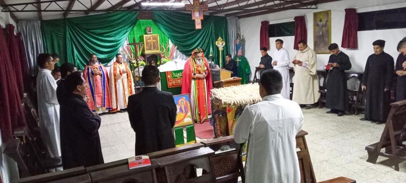 La primera jornada de los ejercicios espirituales del seminario concluyó con la celebración de la divina liturgia, presidida por el arzobispo y concelebrada por los padres Luis Uyoa y Ángel Cáseres.