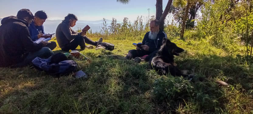 Después de haber llegado y tomar un tiempo de descanso, se comenzó con el tiempo de oración específico, con lo cual se concretizaba la oración que se había hecho interiormente a lo largo del ascenso.