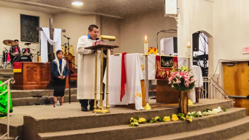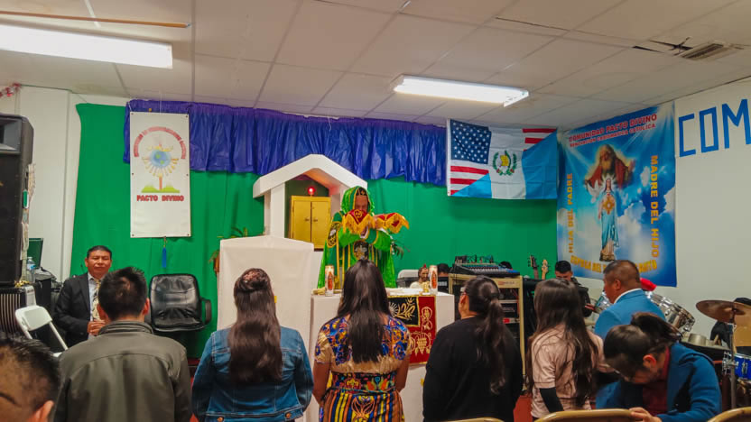 Ya bien entrada la noche, el arzobispo llegó hasta la comunidad Poder del Espíritu Santo, ubicada en el centro de Los Ángeles y formada, en su mayoría por hermanos procedentes de la Boca Costa de Sololá.