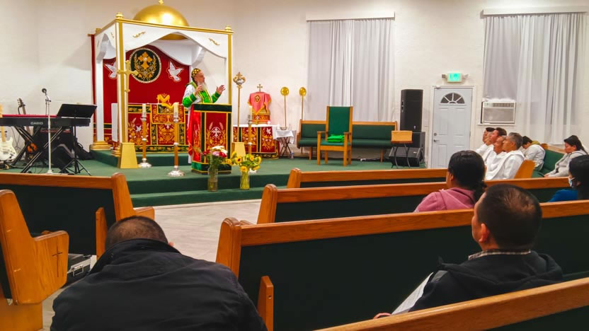 La visita pastoral a la comunidad Santa María de Guadalupe de Riverside, concluyó con la celebración de la divina liturgia, la cual fue presidida por el arzobispo.