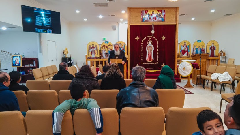 El domingo 19, por la tarde, después de un largo viaje, el arzobispo llegó hasta la parroquia copta de Santo Tomás Eremita, ubicada en la ciudad de Temécula.