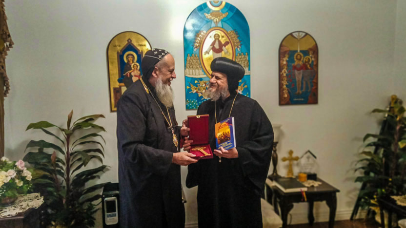 El lunes 20 de febrero, nuestro arzobispo llegó hasta la parroquia copta de San Mauricio en Pomona, para encontrarse con el arzobispo Serapión, arzobispo copto del oeste de los Estados Unidos.
