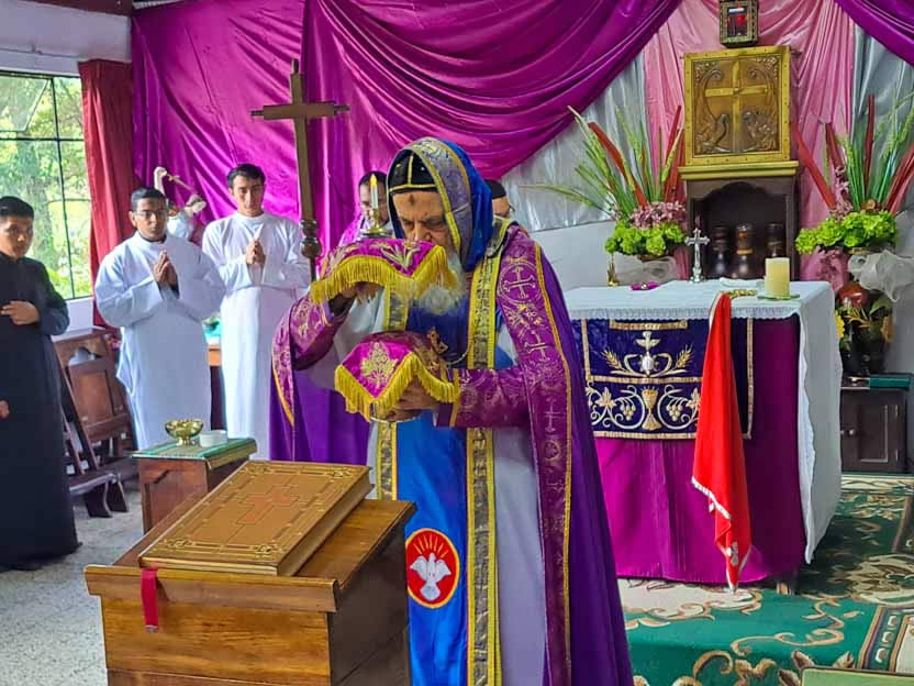 La actividad pastoral del arzobispo se completó con la celebración de la divina liturgia para los miembros de la comunidad central de El Arenal, San Gaspar Ixchil.