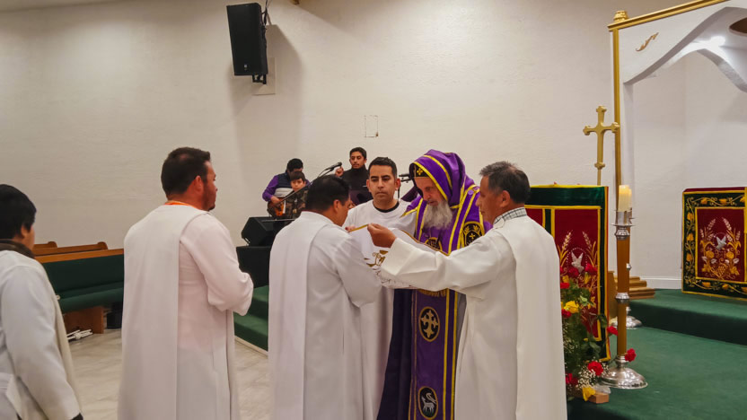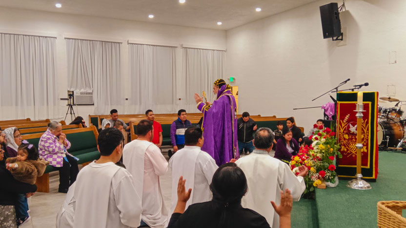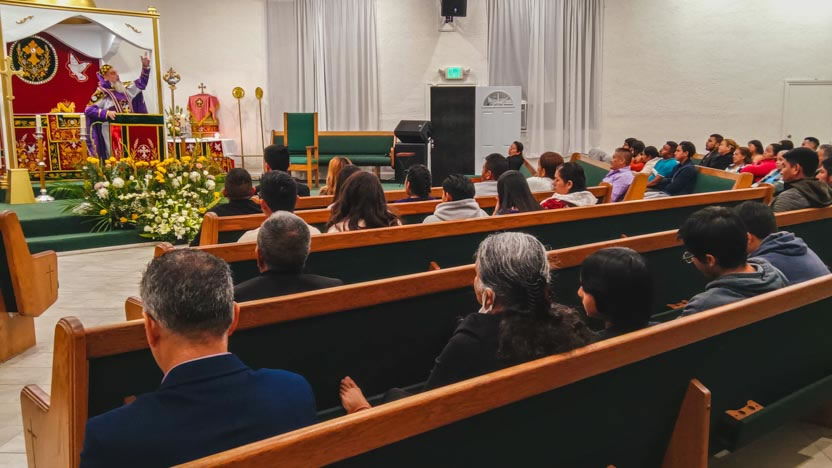 Finalmente, el arzobispo presidió la celebración de la divina liturgia con los hermanos de la comunidad Pacto Divino, ubicada en el centro de la ciudad de Los Ángeles.