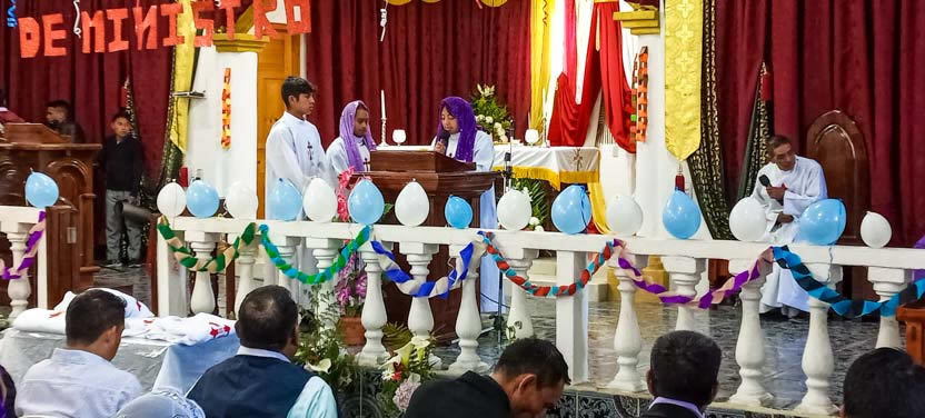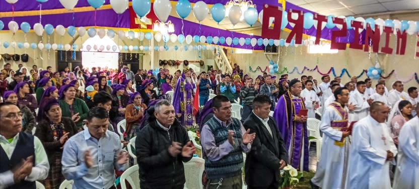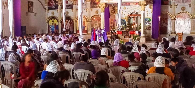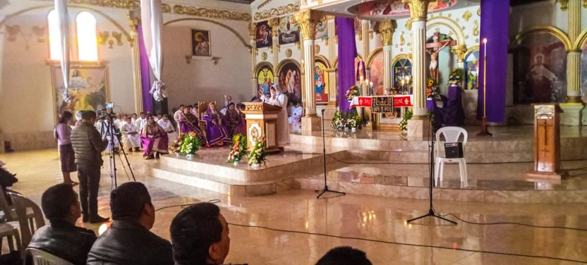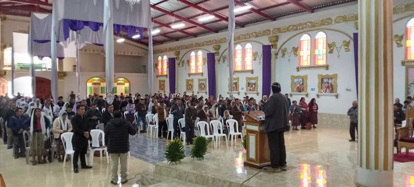 Hacia el final de la mañana, comenzaron las celebraciones litúrgicas en la sede de la parroquia de San Mateo Apóstol, San Mateo Ixtatán, Huehuetenango.