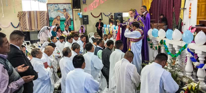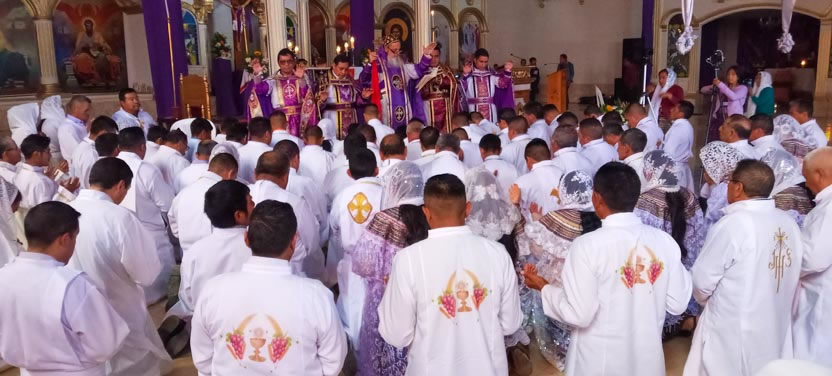 Después de la homilía, se hizo la institución y la renovación de la institución para unos cincuenta ministros para la distribución de la comunión de las cinco parroquias del decanaato del centro de Huehuetenango.