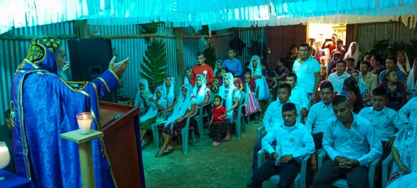 Finalmente, el arzobispo presidió la celebración de la divina liturgia con los hermanos de la comunidad de El Mirador Pojom, de Santa Cruz Barillas, Huehuetenango.