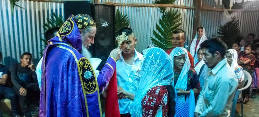 También, dado que el arzobispo hacía la primera visita a la Comunidad de El Mirador Pojom, de Santa Cruz Barillas, Alonso y Angelina celebraron su matrimonio.