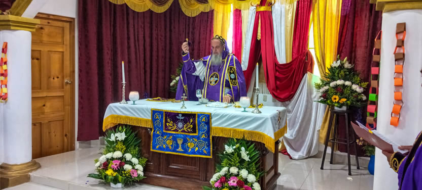 La actividad en la Parroquia de San Mateo Apóstol de San Mateo Ixtatán, concluyó con la celebración de la divina liturgia, presidida por el arzobispo y concelebrada por el padre Marcos Caicedo, párroco local.