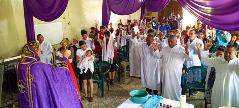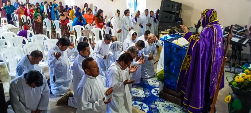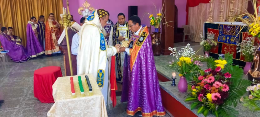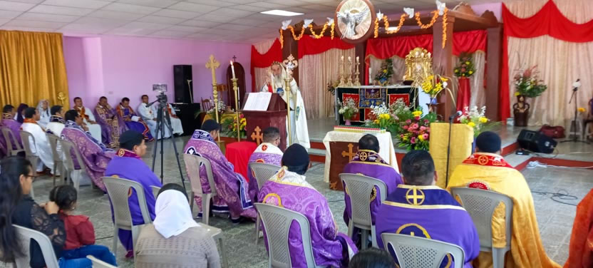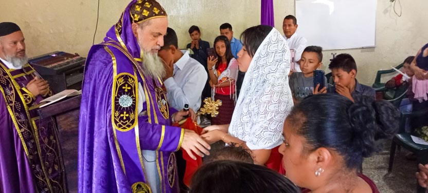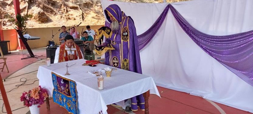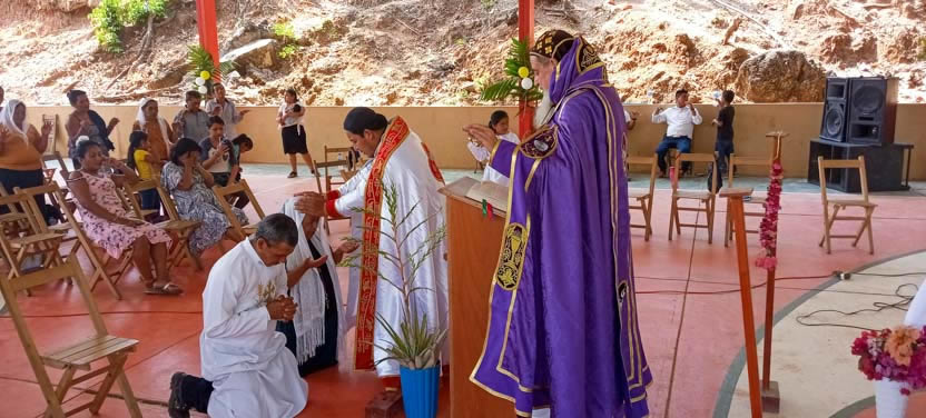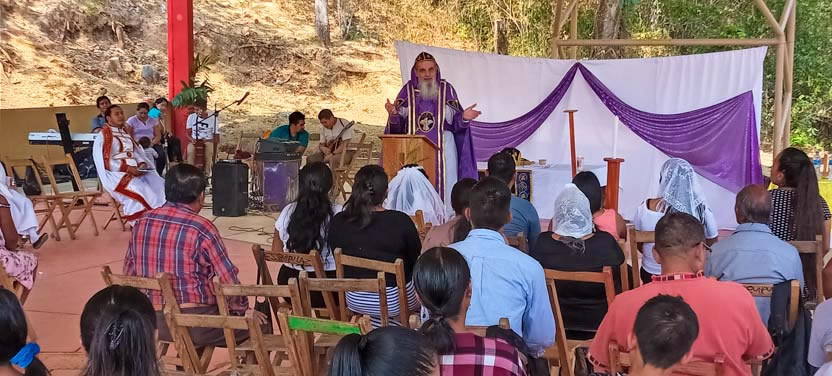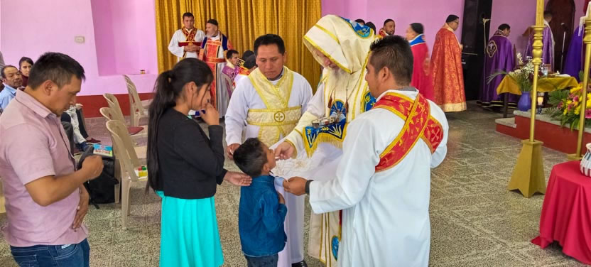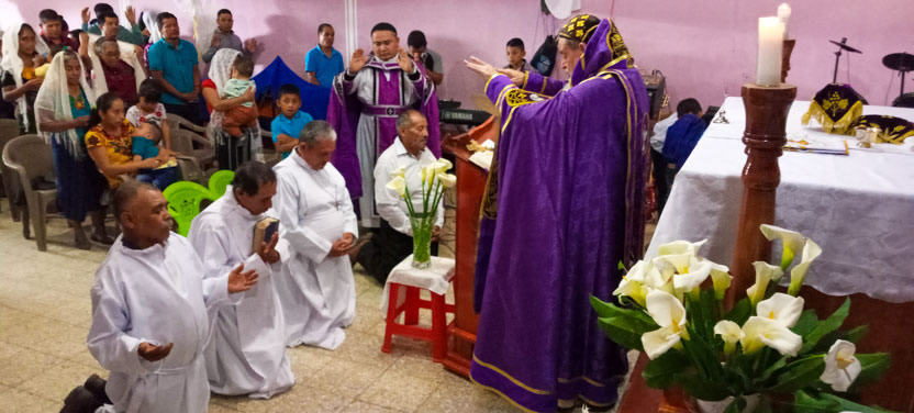 La actividad pastoral del lunes santo, culminó con la celebración de la divina liturgia en el Centro Pastoral de Petatán, Huehuetenango.