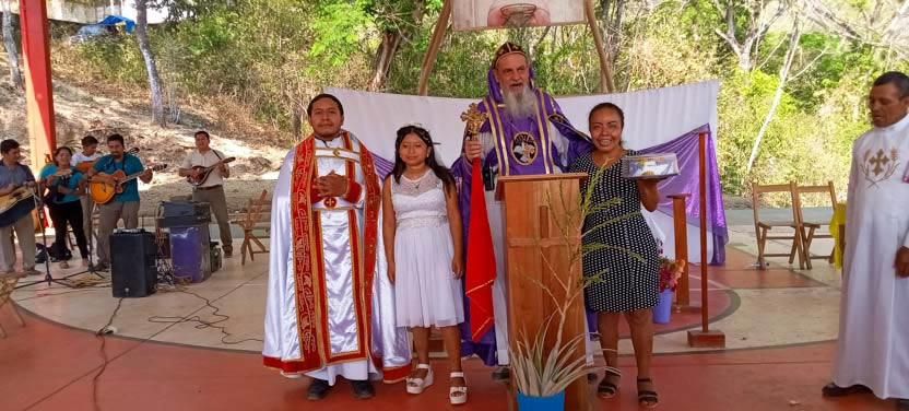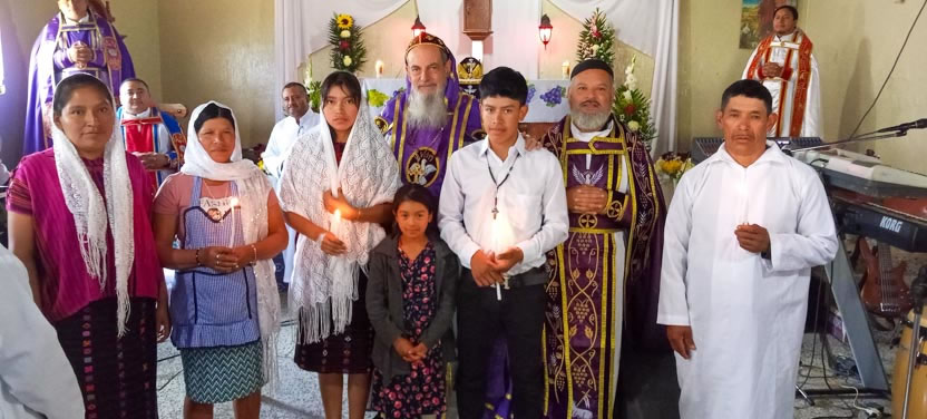 La actividad en la comunidad Santísima Trinidad de Concepción Huista, culminó con la celebración de la divina liturgia, presidida por el arzobispo y concelebrada por el padre Santo, párroco local.