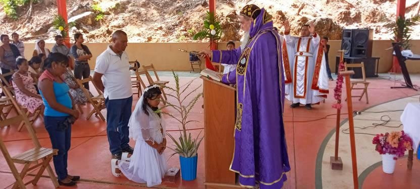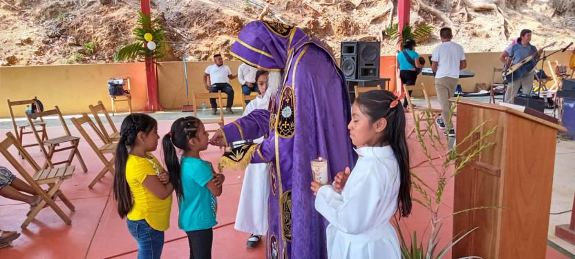 Con ocasión de la visita del arzobispo al centro pastoral de Petatán, se preparó a la niña María, para que, dentro de sus limitaciones, pudiera recibir la confirmación de la crismación y el envío misionero.