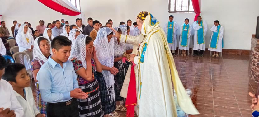 En el contexto de las celebraciones litúrgicas en la comunidad de Chaaoj, fueron presentados al arzobispo 14 hermanos para recibir la confirmación de la crismación.